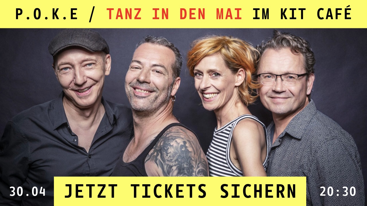 P.O.K.E. / Tanz in den Mai im KIT Café Düsseldorf – Songs der Extraklasse. Tighte Grooves, transparenter Akustik-Sound, soulige Power-Stimme und dazu eine große Portion good Vibrations: die vierköpfige Düsseldorfer Band hat sich seit 2021 in der Düsseldorfer Live-Szene mit einem vielseitigen und anspruchsvollen Repertoire verschiedenster Genres einen Namen gemacht.